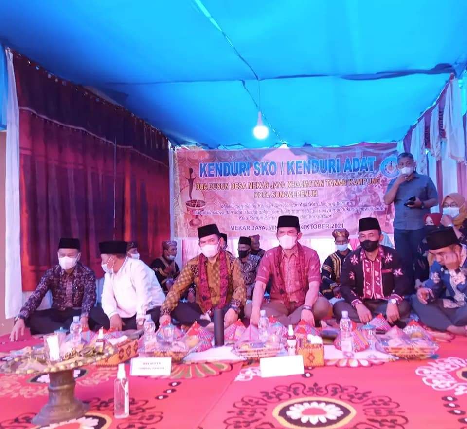 SUNGAIPENUH,- eNewsTimE.co - Walikota Ahmadi Zubir dan Wakil Walikota Alvia Santoni, menghadiri Acara Syukuran adat Kenduri Sko Masyarakat Dua Dusun Desa Mekar Jaya, Kecamatan Tanah Kampung, Minggu (10/10).