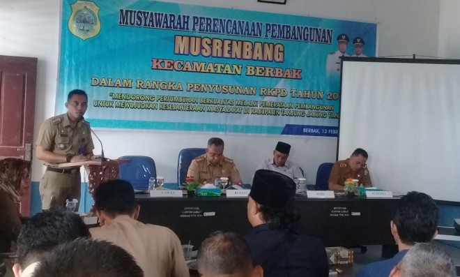Musrenbang yang dilaksanakan di aula Kantor Camat Berbak ini merupakan langka dalam membantu mendorong percepatan pembangunan, mulai dari tingkat Desa, Kelurahan, Kecamatan dan sampai ke tingkat Kabupaten, Provinsi dan tingkat Nasional.