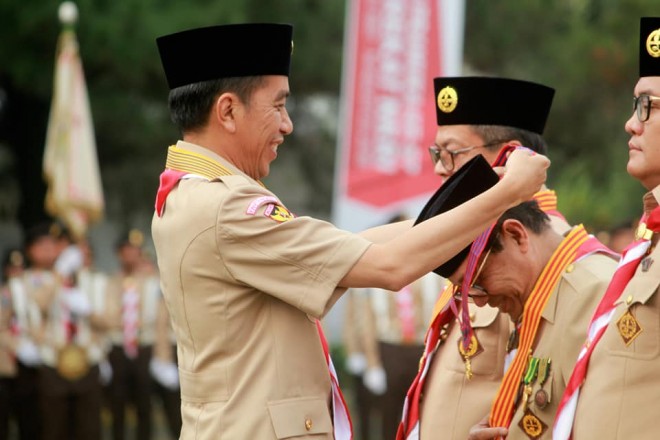 JAKARTA, eNewsTimE.co - Pelaksana Tugas (Plt) Gubernur Jambi selaku Ketua Majelis Pembimbing Daerah (Kamabida) Gerakan Pramuka Daerah Jambi, Fachrori Umar, dianugerahi penghargaan Pramuka Satyawira Utama oleh Kwartir Nasional Gerakan Pramuka, yang diserahkan oleh Presiden Republik Indonesia selaku Kamabinas, Joko Widodo (Jokowi), dalam Peringatan Hari Pramuka ke-57 Tahun 2018 di Lapangan Gajah Mada Taman Rekreasi Wiladatika, Cibubur Jakarta Timur, Selasa (14/8). Penghargaan tersebut diberikan kepada Kepala Daerah yang yang berjasa dalam mendukung sekaligus membangun Gerakan Pramuka di daerahnya. Usai menerima penghargaan, Fachrori menyampaikan, kegiatan Pramuka di Provinsi Jambi akan terus ditingkatkan, agar bibit generasi muda Jambi terlatih dan tangguh dalam menghadapi masa depan yang penuh tantangan. Fachrori menjelaskan, dulu Pramuka Jambi setiap bulannya tepat tanggal 17 selalu mengadakan Aktrasi Prade Senja di Lapangan Depan Kantor Gubernur Jambi, dan akan mengaktifkan kembali Parade Senja Gerakan Pramuka tersebut. ‘’Aktrasi Parade Senja Pramuka Jambi akan kita tampilkan kembali di setiap tanggal 17 setiap bulannya, utuk meningkatkan keaktifan dan keterampilan generasi muda yang tergabung dalam Pramuka,’’ tutur Fachrori. Senada dengan Instruksi Presiden, Fachrori minta agar generasi muda di masa mendatang harus terampil dan cerdas. ‘’Tantangan generasi muda di masa mendatang tidak sama dengan masa lalu, sekarang generasi muda harus terampil dan juga menguasai ilmu pengetahuan dan teknologi,’’ jelas Fachrori. Dalam sambutannya, Presiden Jokowi menyampaikan ucapan selamat Ulang Tahun kepada semua unsur Praja Muda Karana (Pramuka), jiwa muda yang suka berkarya di seluruh tanah air. ‘’Selama 57 tahun, Gerakan Pramuka telah turut berkarya membentuk generasi muda Indonesia mengisi dinamika pembangunan cinta tanah air, yang mendarmabhaktikan kebudayaan bangsa dan negara,’’ ujar presiden. Pada kesempatan ini, Presiden berpesan kepada Pramuka agar tetap bersemangat berinovasi dan produktif. ‘’Adik-adik Pramuka harus menjadi garda terdepan untuk kemajuan bangsa,’’ ungkapnya. Sebelumnya, Ketua Kwarnas Gerakan Pramuka, Adhyaksa Dault mengatakan, kehadiran Presiden Jokowi selaku Kamabinas dalam setiap Peringatan Hari Pramuka bukan sekadar memperkuat peran Pramuka dalam menjaga keutuhan NKRI, tapi juga sekaligus memberikan semangat kepada adik-adik Pramuka untuk terus belajar, memberikan yang terbaik bagi Indonesia. ‘’Kami memberikan penghargaan kepada Kepala Daerah dan tokoh-tokoh Pramuka yang berkontribusi untuk pengembangan dan kemajuan Gerakan Pramuka di daerah masing-masing,’’ kata Adhyaksa Dault.