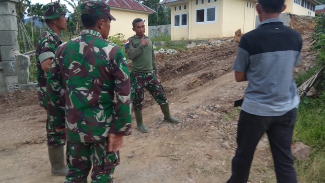 Dengan didampingi anggota satgas lainnya, Perwira dengan dua mawar di pundaknya ini dengan menggunakam sepeda motor melihat secara langsung di seluruh titik pengerjaan rehab jalan.