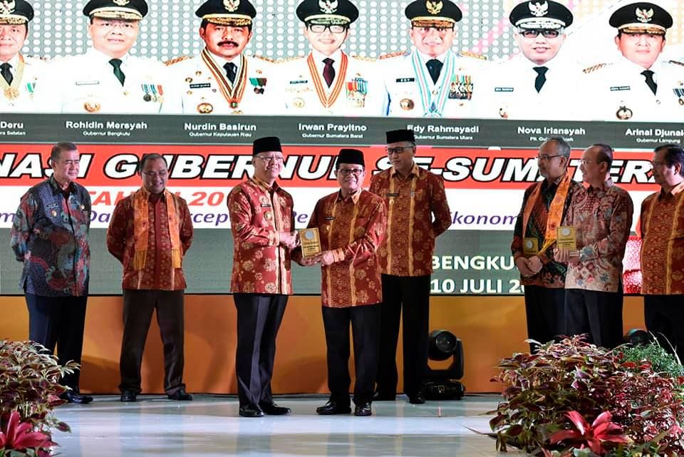 BENGKULU, eNewsTimE.co - Gubernur Jambi, Fachrori Umar bersama para Gubernur se Sumatera menandatangani Program Kesepakatan Raflesia yang nantinya langsung disampaikan kepada Presiden Republik Indonesia. Kesepakatan ini merupakan komitmen bersama Gubernur se Sumatera untuk meningkatkan peran pulau Sumatera dalam percepatan pembangunan ekonomi nasional. Penandatanganan ini dilakukan dalam Rapat Koordinasi (Rakor) Gubernur se Sumatera Tahun 2019 dengan tema “Peningkatan Peran Pulau Sumatera Dalam Percepatan Pembangunan Ekonomi Nasional”, Selasa (9/7), di Krakatau Ballroom Hotel Grage Bengkulu. Isi dari kesepakatan ini adalah mendorong percepatan pembangunan Jalur Kereta Api Sumatera, percepatan pembangunan Jalan Tol Trans Sumatera, pengembangan pelabuhan di pesisir barat Sumatera, penguatan Program Tol Laut, percepatan realisasi pembangunan Selat Sunda, dan mendorong pemerintah untuk percepatan KEK di wilayah Sumatera.
