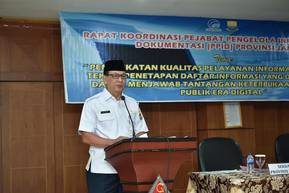 JAMBI, eNewsTimE.co - Sekretaris Daerah (Sekda) Provinsi Jambi, Drs.H.M.Dianto,M.Si menegaskan bahwa Organisasi Perangkat Daerah (OPD) harus meningkatkan kualitas pelayanan informasi publik, demi mendorong transparansi penyelenggaraan pemerintahan dan terciptanya tata kelola pemerintahan yang baik. Hal itu disampaikan Sekda saat membuka Rapat Koordinasi Pejabat Pengelola Informasi dan Dokumentasi (PPID) Provinsi Jambi, di Hotel Grand Jambi, Rabu (28/8).