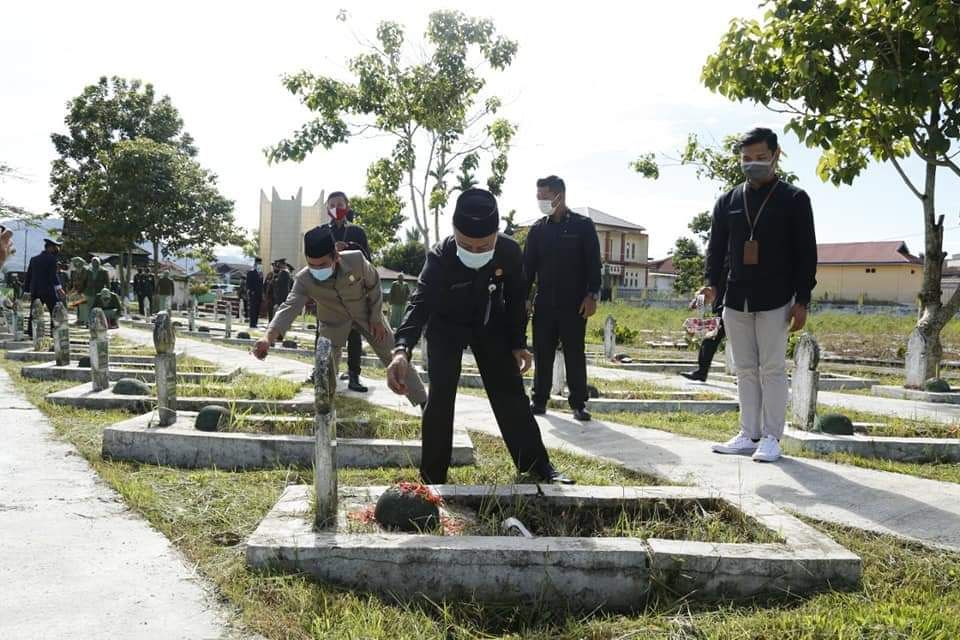 SUNGAI PENUH - Walikota Sungai penuh diwakili Pj Sekda Alpian, SE.MM menghadiri dan mengikuti Ziarah Nasional di taman makam Pahlawan Bhakti Semumu, Jumat (2/10).