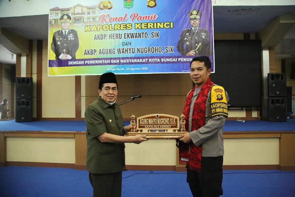 SUNGAIPENUH,- eNewsTimE.co - Pemerintah Kota Sungai penuh menggelar acara kenal pamit Kapolres Kerinci , AKBP Heru Ekwanto, SIK dan AKBP Agung Wahyu Nugroho, SIK, Selasa (25/8).