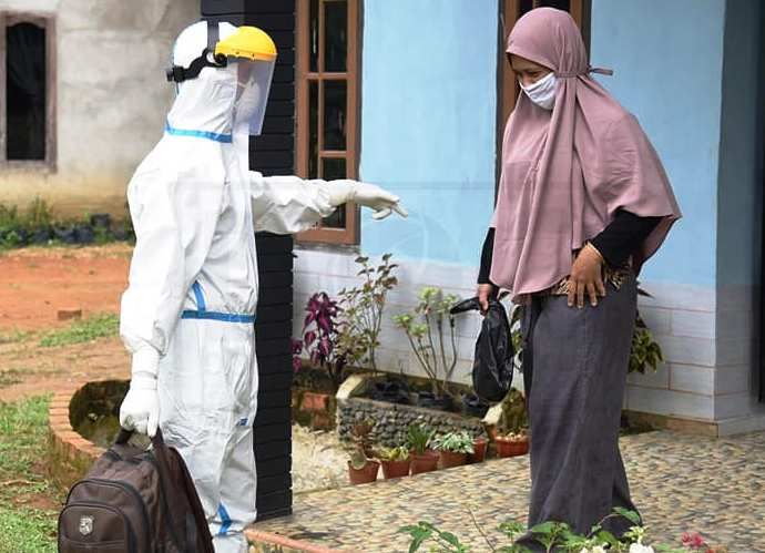 MUARASABAK, eNewsTimE.co - Tim Gugus Tugas Penanganan Covid-19 Kabupaten Tanjung Jabung Timur (Tanjabtim) bersama personil Polres Tanjabtim, Pabung 0419/Tanjab dan unsur terkait lainnya melaksanakan kegiatan penjemputan atau pemindahan Pasien Covid-19 yang melaksanakan Isolasi Mandiri (Isoman) ke lokasi Isolasi Terpusat (Isoter) yang telah disiapkan Pemkab Tanjabtim, Kamis (19/08/2021).