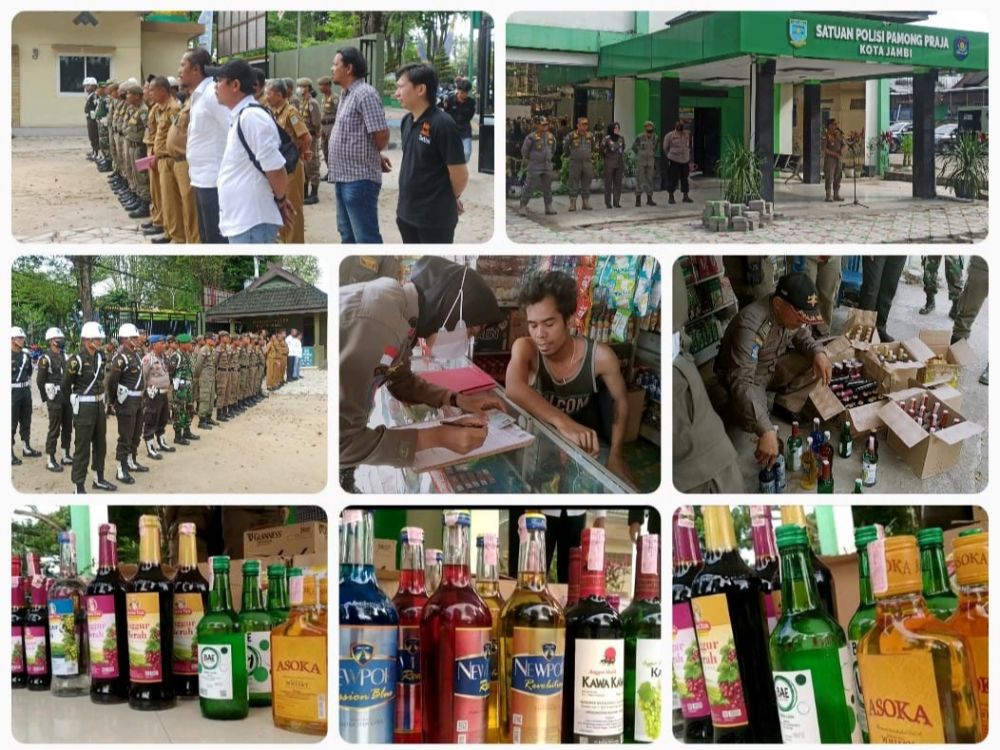 eNewsTimE.id, Jambi - Satuan Polisi Pamong Praja Kota Jambi mengamankan ratusan minuman alkohol (Minol) dalam kegiatan penertiban dan penegakan produk hukum daerah dalam wilayah Kota Jambi, yang dilakukan Senin (26/12/2022).